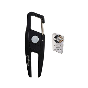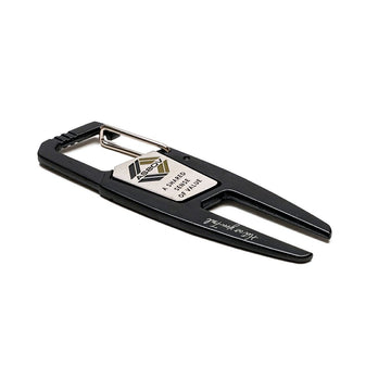 Una elegante combinación de forma y función, el AS2OV Golf Fork Mosquetón en negro es un accesorio imprescindible para el golfista moderno. Fabricado con metal de alta calidad y acabado en negro mate, esta herramienta minimalista combina un tenedor reparador de divots con un robusto clip de mosquetón, manteniéndose accesible y con estilo.
