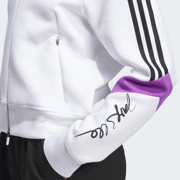 Élevez votre jeu de golf avec le hoodie en maille pour femmes adidas X Jay3lle. Ce sweat à capuche ample, tricoté à partir d'un mélange durable de 53% coton et 47% polyester recyclé, offre un confort décontracté sur et en dehors du parcours. Les caractéristiques incluent un badge de sport thermocollé, des cordons de serrage pour l'ajustement et deux poches zippées à l'avant, le tout complété par le logo performance adidas avec la signature Jay3lle. Soyez audacieuse, soyez confortable, affirmez-vous.