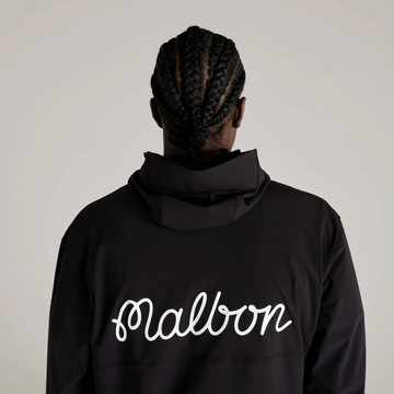 - Découvrez une performance inégalée avec la veste Malbon Performance Full Zip Shell. Confectionnée à partir d'un mélange de 76% nylon et 24% spandex, elle inclut des détails comme des fermetures Velcro aux poignets, des poches latérales zippées et un ourlet et une capuche ajustables avec bloqueurs de cordon. Dotée du logo emblématique Malbon Script sérigraphié sur la poitrine gauche et le dos, cette veste établit la norme pour des vêtements de sport haut de gamme.