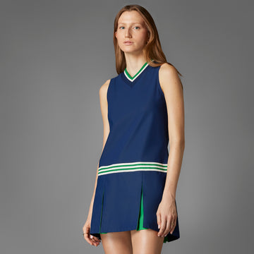 The Originals Dress is a versatile piece, designed to perform both on and off the golf course. The elastic drop waist construction with three zip pockets provides a clean look throughout the round. Made from 80% recycled Polyethylene Terephthalate and 20% Bio-based Polytrimethylene Terephthalate TWISTKNIT, this dress is not only comfortable but also contributes to sustainability.