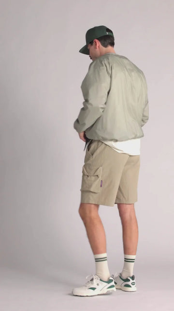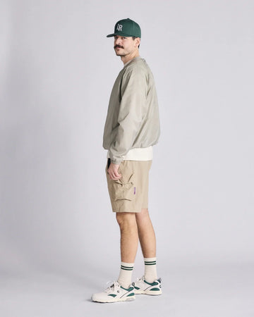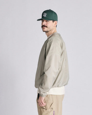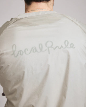 A homage to the goat 90s style the crewneck windbreaker is made of a recycled 100% nylon outer layer from Italy and with an inner mesh. It features a Local Rule print on the back inner mesh and a flag on the front chest. Relaxed and casual fit.