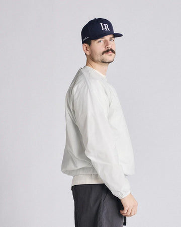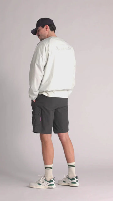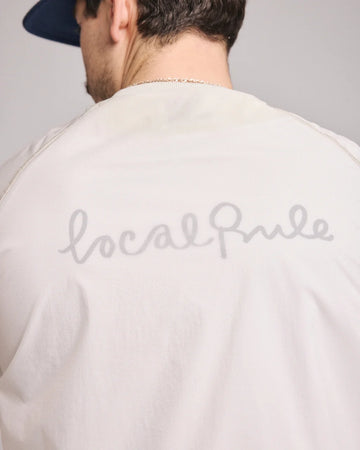 A homage to the goat 90s style the crewneck windbreaker is made of a recycled 100% nylon outer layer from Italy and with an inner mesh. It features a Local Rule print on the back inner mesh and a flag on the front chest. Relaxed and casual fit.