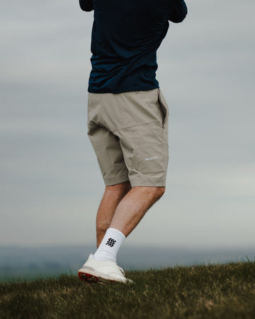 The 4-way stretch, water and wind-resistant Recycled Greenskeeper Short made from 93% recycled nylon and 7% elastane, brings the classic worker style to the course. The Trousers feature a fully elasticated waistband with a drawcord, 8 storage pockets, and a relaxed fit. The double-pleat at the front nods to timeless on-course etiquette, so you can combine a sharp look with rugged functionality, making them perfect for long summer rounds or casual off-course wear.