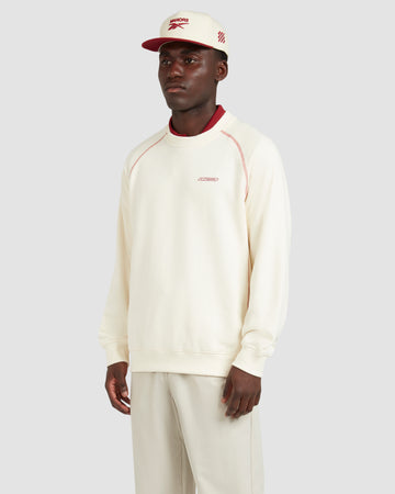 The Reebok x Manors Cotton Crewneck combines comfort, style, and sustainability with a nod to vintage sportswear. Made from 100% GOTS-certified organic cotton, it features a raglan sleeve construction for ease of movement. The contrast flatlock stitching brings a subtle throwback aesthetic to this versatile layer—for cool evenings on the course and terrace.